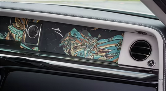 在该系列中,幻影长轴距版的内饰中控台上展示了一幅手绘皮革艺术品,尤为引人注目。