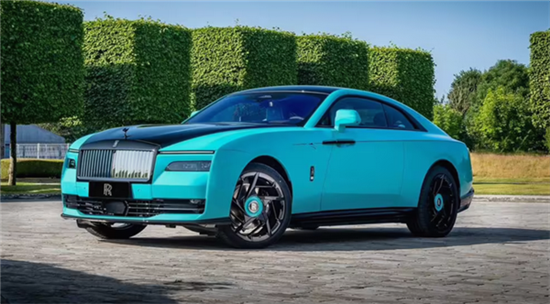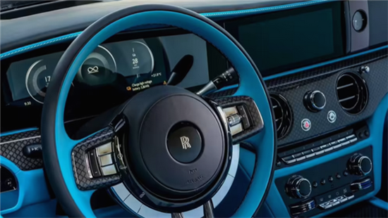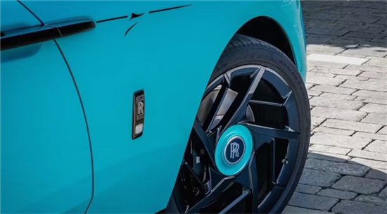 此外,劳斯莱斯还定制推出了 Black Badge 闪灵车型,采用双色涂装。车身主体以洞穴壁画为灵感,采用蓝绿色调,而车顶和引擎盖则为鲜艳的金属钻石黑,整体设计充满了艺术感与现代感的融合。